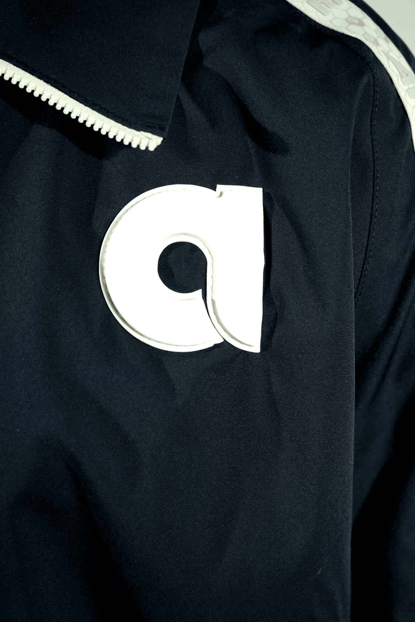Cropped track jacket with rubber A patch, detachable chain and signature Amicaliste cutlines