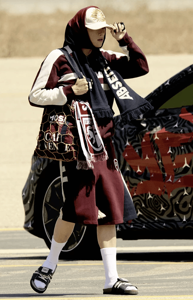 Inspiré par le FC Metz et confectionné à partir de vêtements usagés fournis par le club, cet ensemble se compose d'un blouson de survêtement et d'un short aux lignes épurées et aux accents dynamiques. La fusion de l'élégance urbaine, des références footballistiques et de l'héritage mosellan, soulignée par la Croix de Lorraine, crée un ensemble unique plein de symbolisme. Confectionné à la demande.